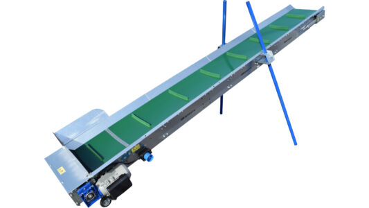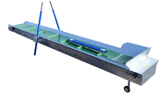 Výhodou je mobilná konštrukcia vybavená manipulačnými kolieskami. Manipulácia s dopravníkom je preto veľmi jednoduchá. Dopravník je v základnej verzii vybavený nastaviteľnými stojanmi, ktoré je možné podľa potreby nastaviť tak, aby bol dopravník v požadovanom sklone.